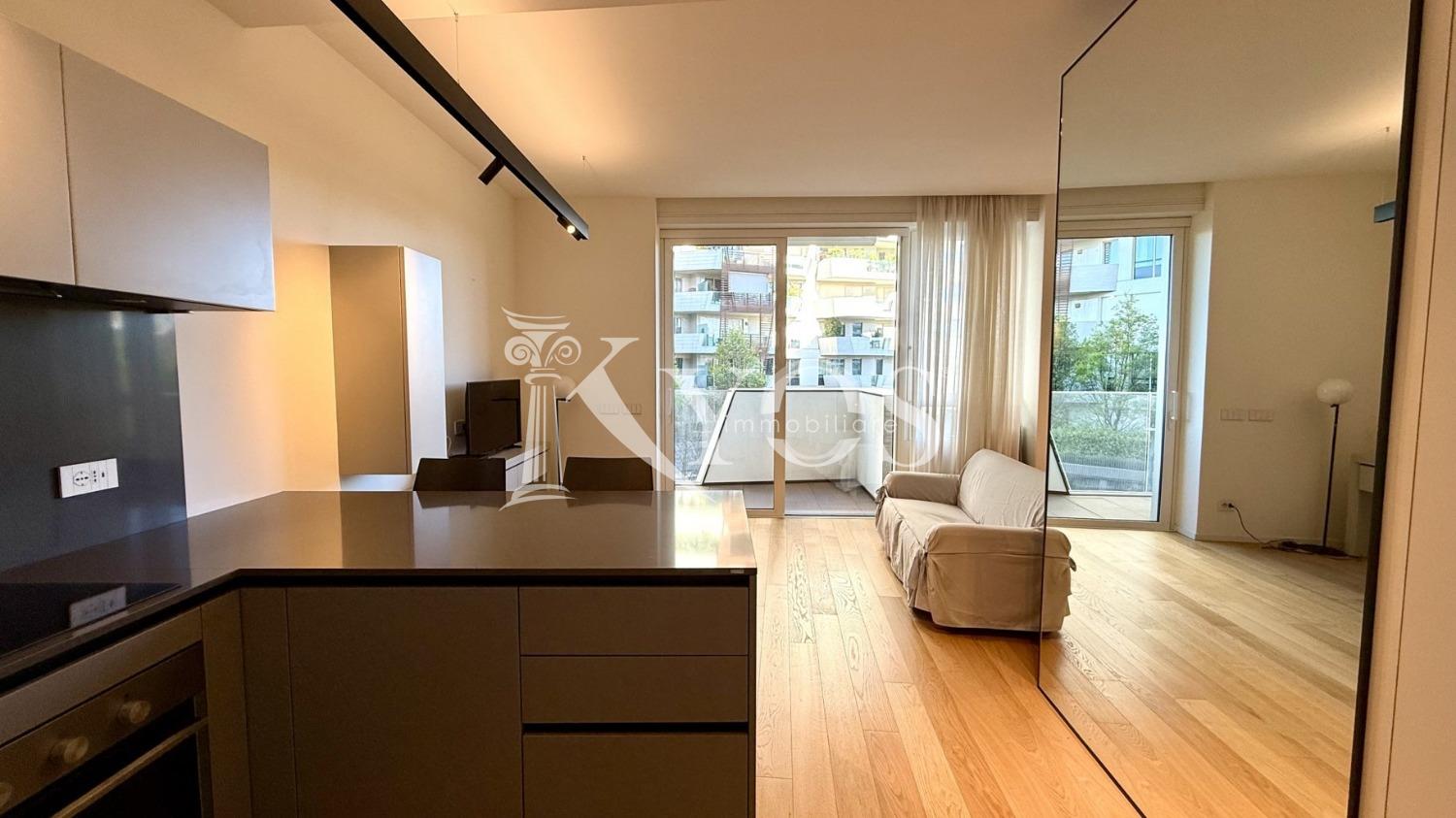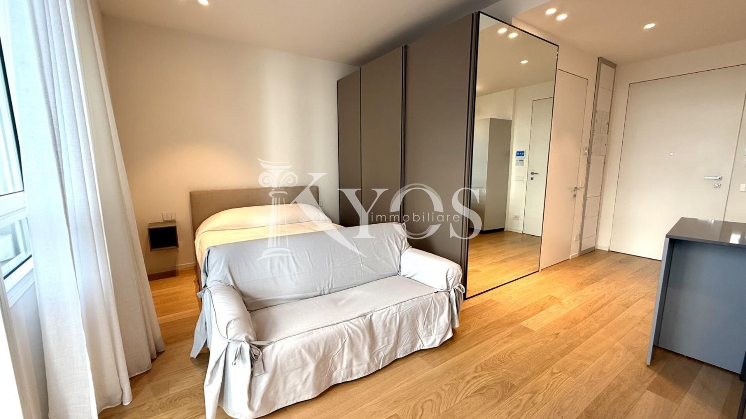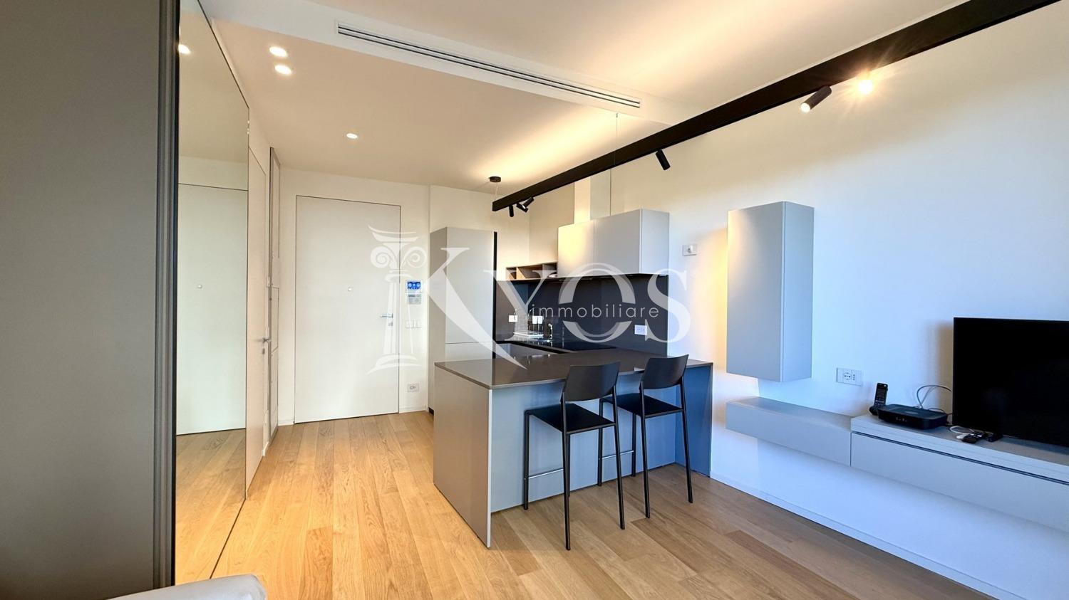 CityLife, tra i contesti più esclusivi e contemporanei di Milano, Kyos Immobiliare propone in locazione un elegante monolocale arredato e corredato situato al primo piano di una delle iconiche Residenze Libeskind.