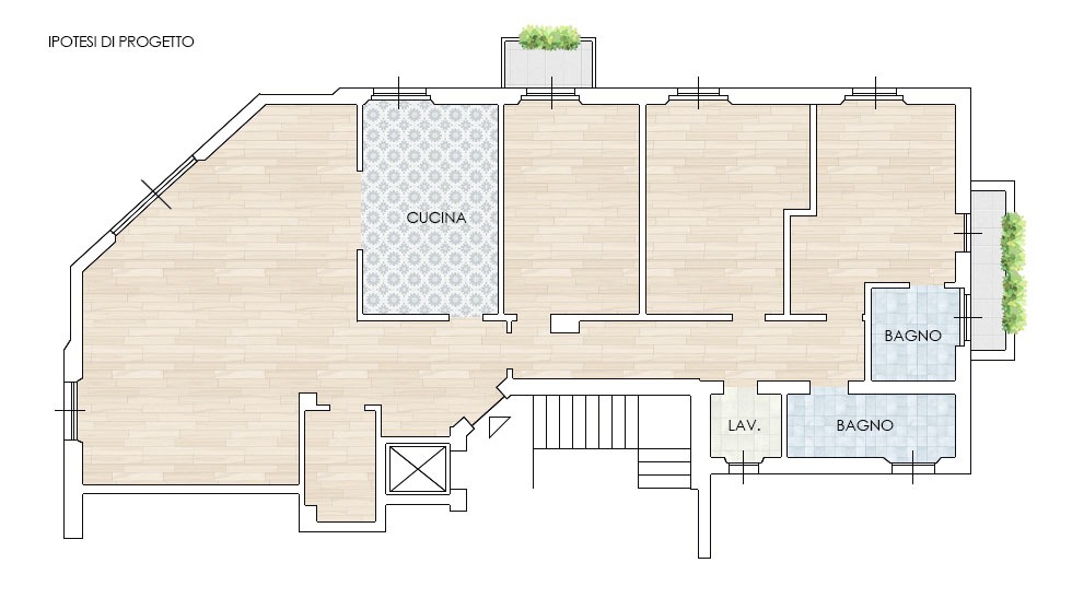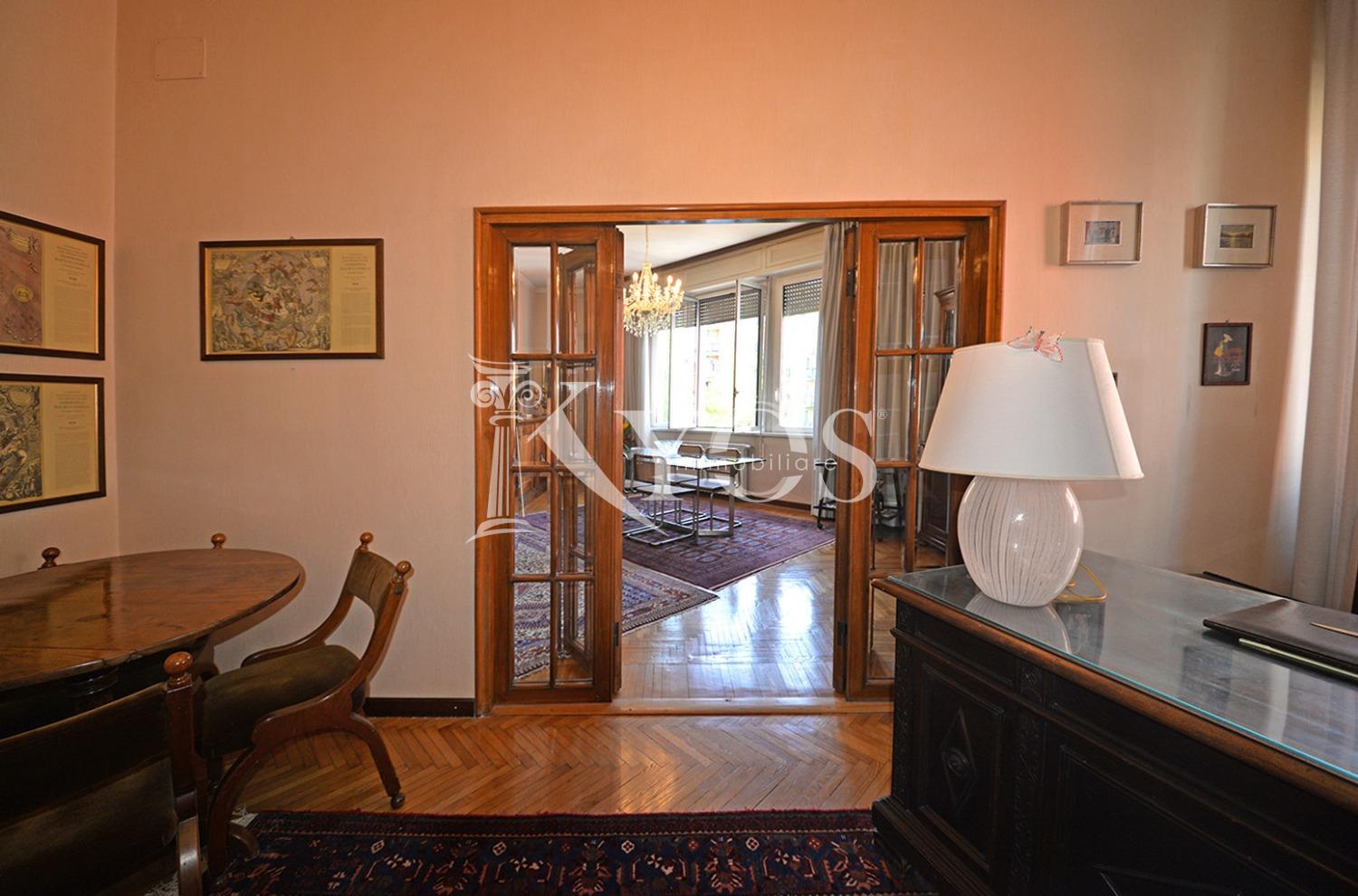 Gli interni conservano il fascino autentico delle abitazioni d’epoca, con soffitti alti impreziositi da stucchi e parquet originale posato a spina, elementi che conferiscono carattere e calore agli ambienti. La distribuzione attuale, classica e ben leggibile, offre inoltre interessanti possibilità di reinterpretazione in chiave più contemporanea, consentendo una personalizzazione degli spazi senza snaturarne l’identità.