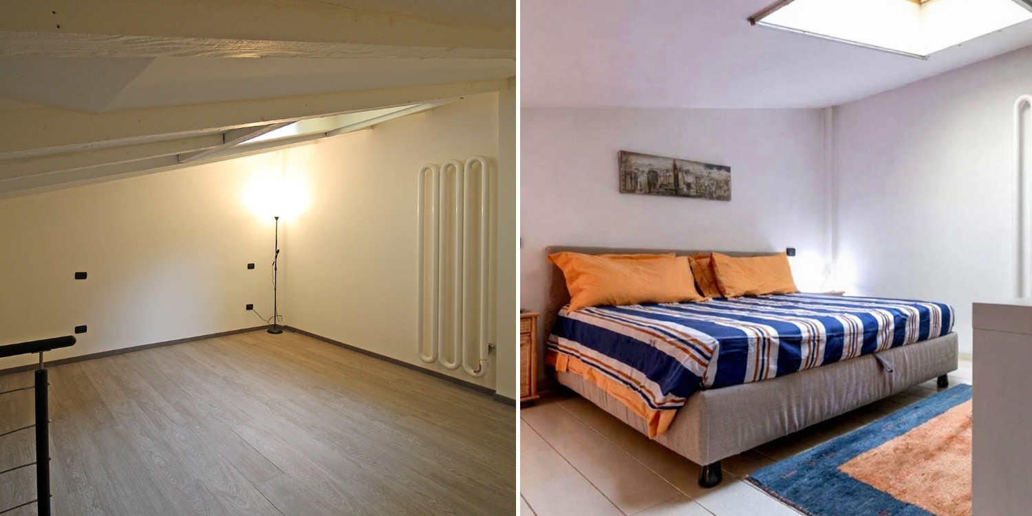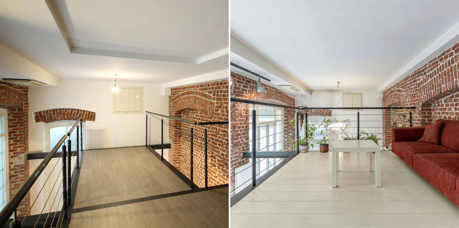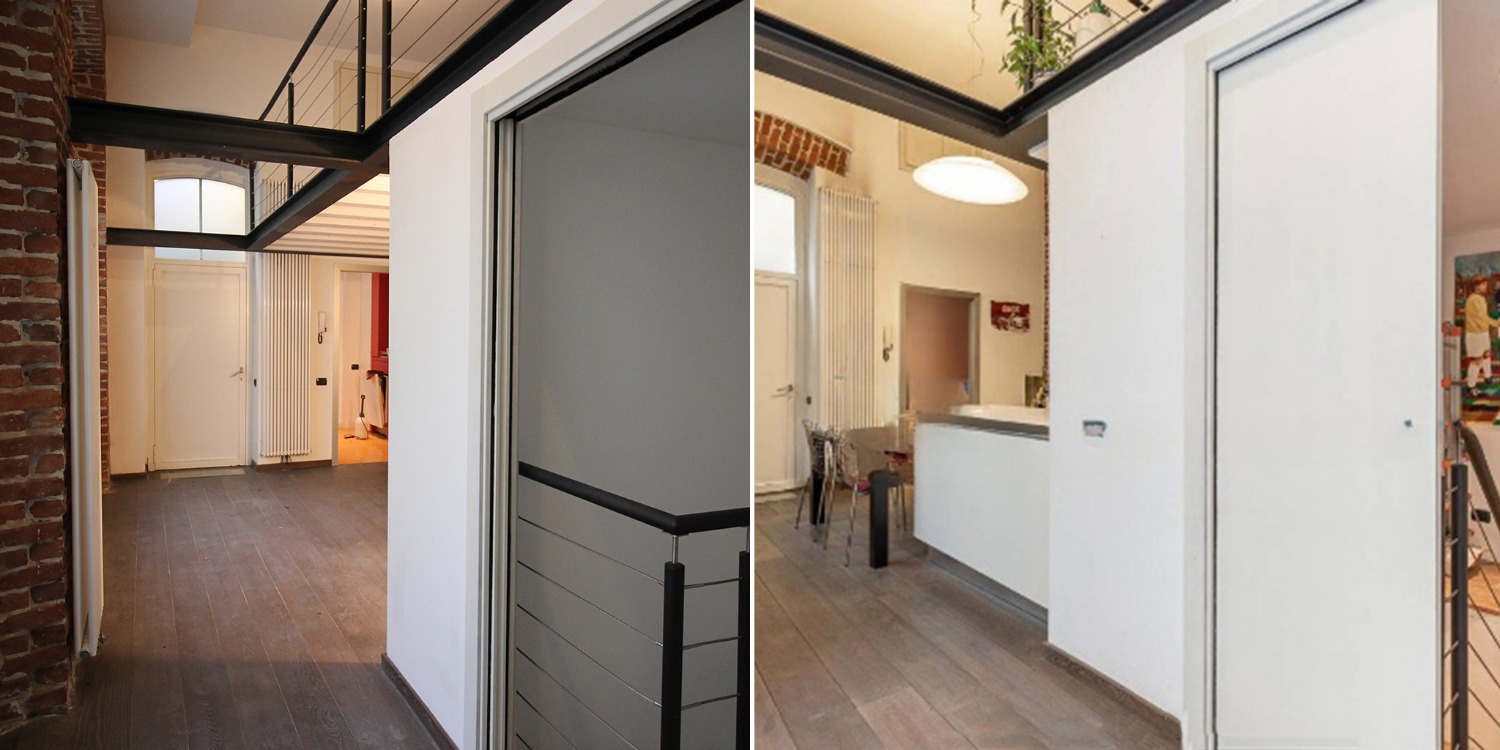 Le altezze importanti ospitano un ampio soppalco che affaccia sulla zona living, ideale per chi ama gli spazi aperti e la continuità architettonica tipica dei Loft.